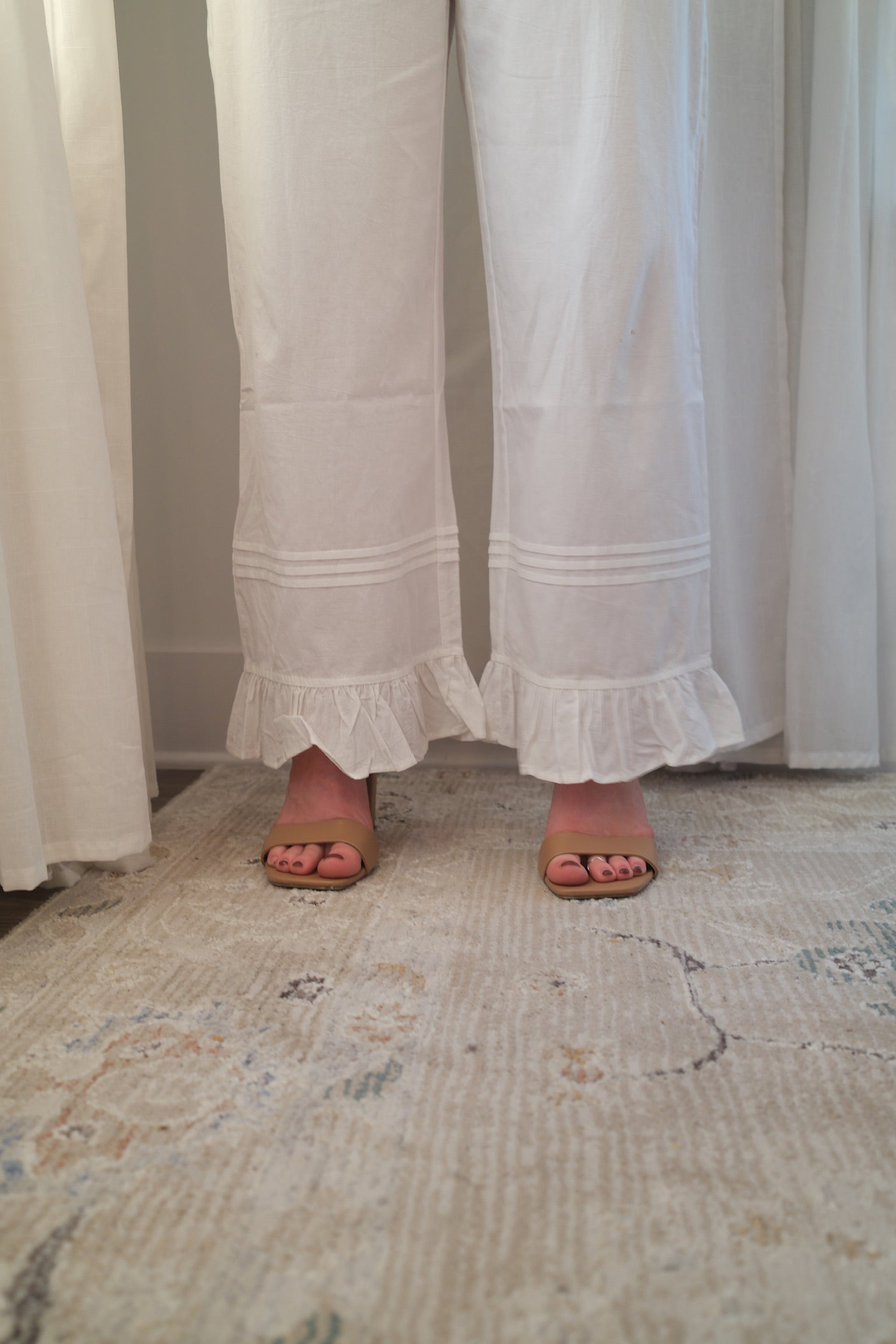 Get ready to float on Cloud Nine with these adorable ruffled pants! Made from lightweight material, featuring a comfortable under short liner, high waist and wide leg. These pants are not only stylish but also functional with their pockets. A must-have addition to your wardrobe!