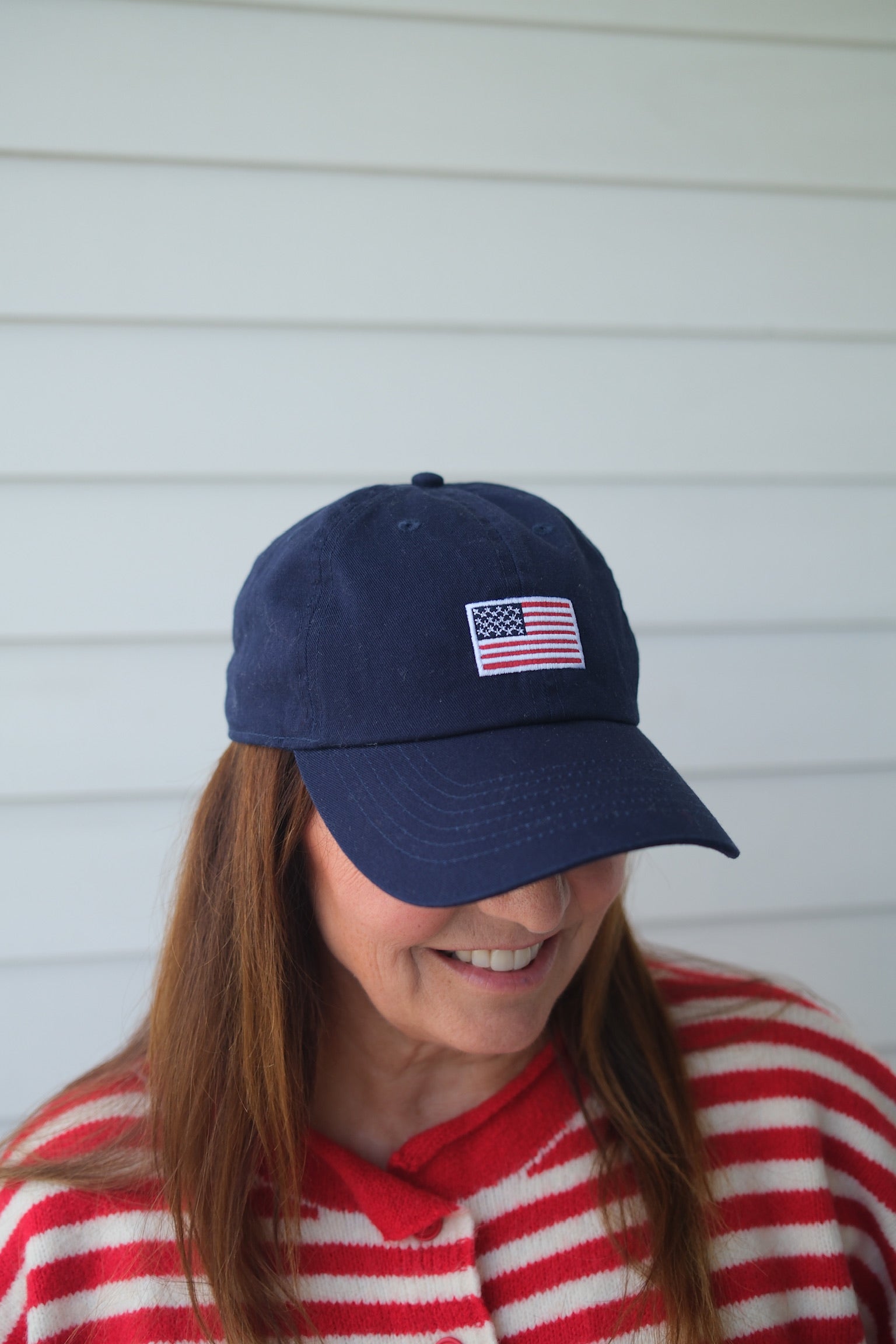 This classic design features a flag motif, while the neutral color makes it versatile for any outfit. Keep the sun out of your eyes and make a statement with this cute cap.