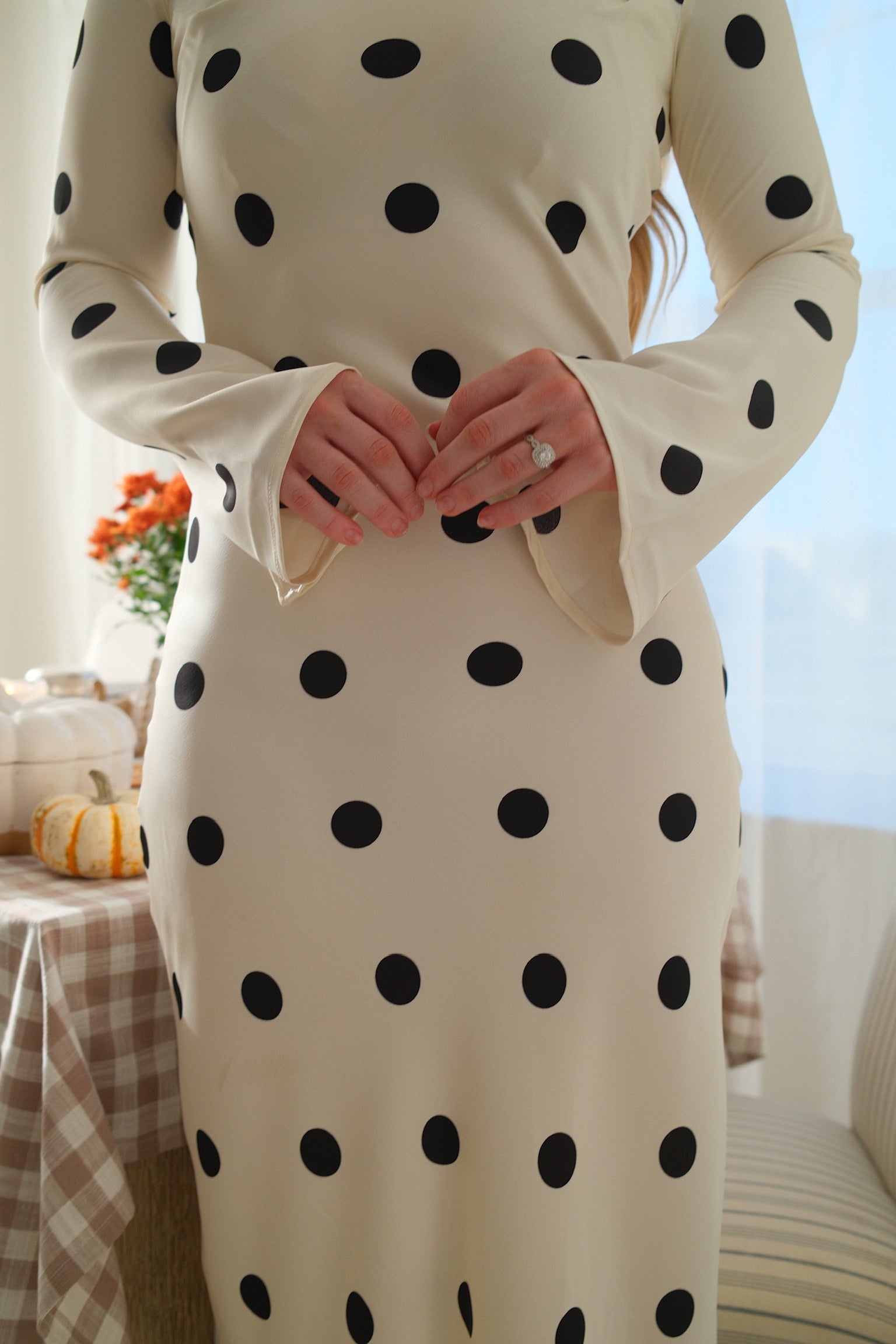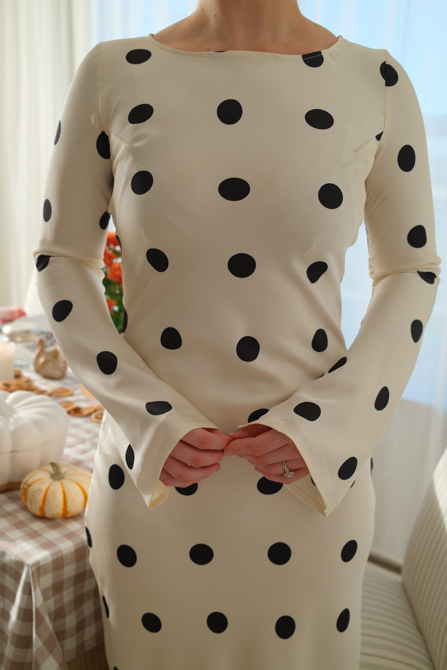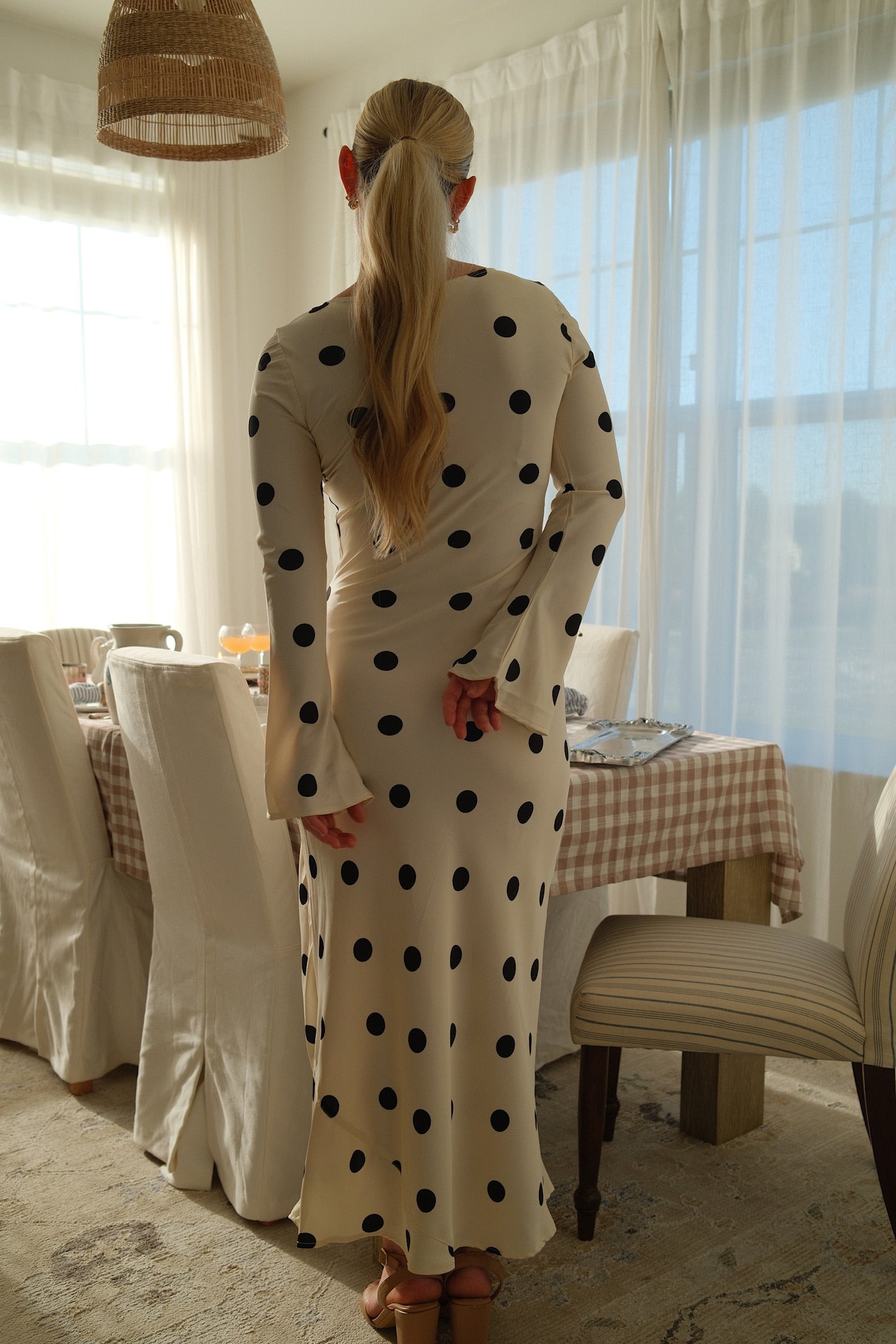 Introducing our Hampton's Dress, crafted from the softest, silkiest fabric to glide effortlessly over your body. The gorgeous silhouette is perfect for any occasion, whether it's a holiday getaway or a formal event. With sleeves that gracefully bell out, this dress exudes elegance and sophistication. Elevate your wardrobe with this luxurious and exclusive piece.