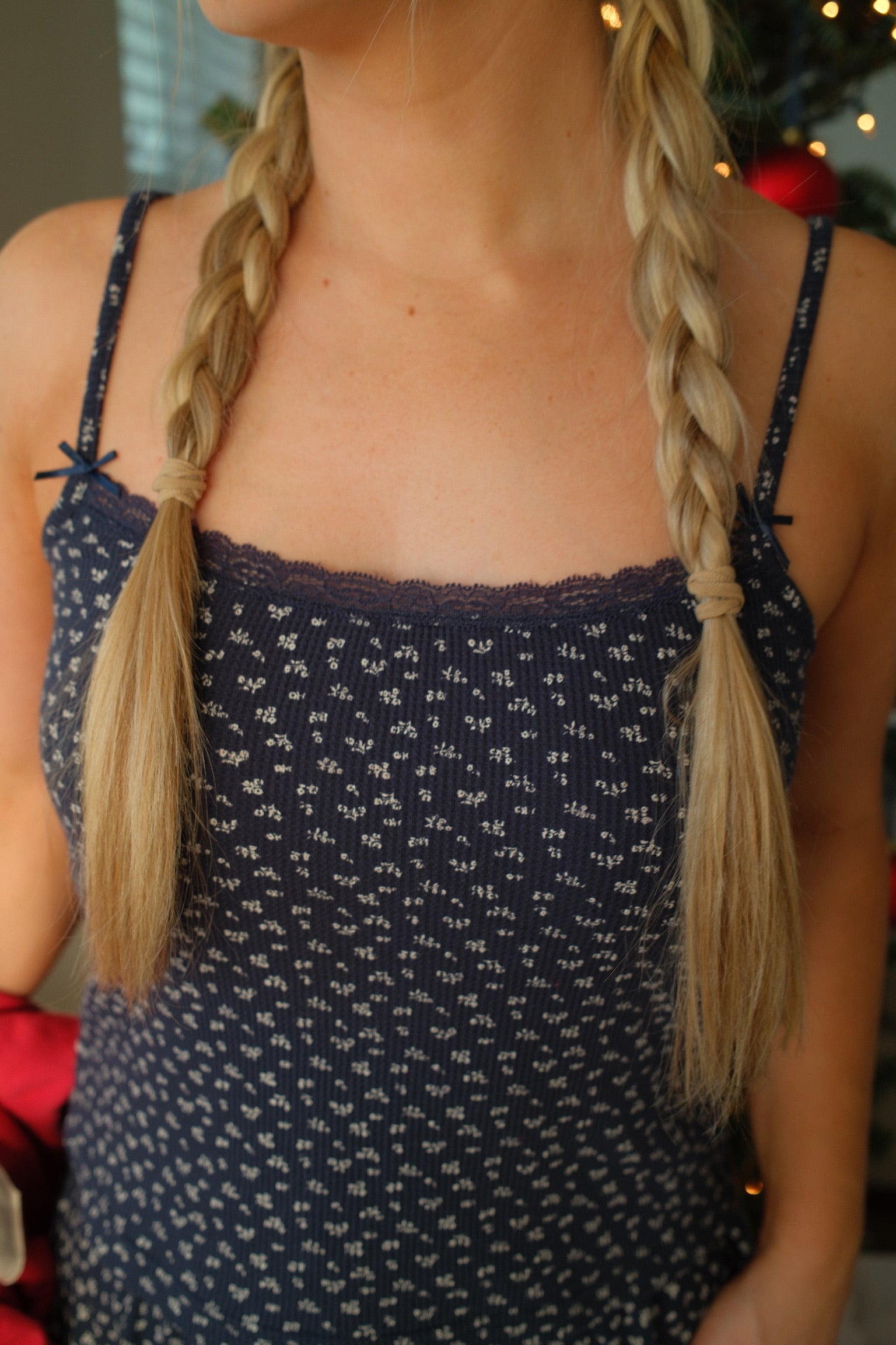 Introducing our Heirloom Pajamas made with a soft waffle knit material. The tank top features charming tiny bows while the wide leg pants have adorable buttons and a fitted waistband.