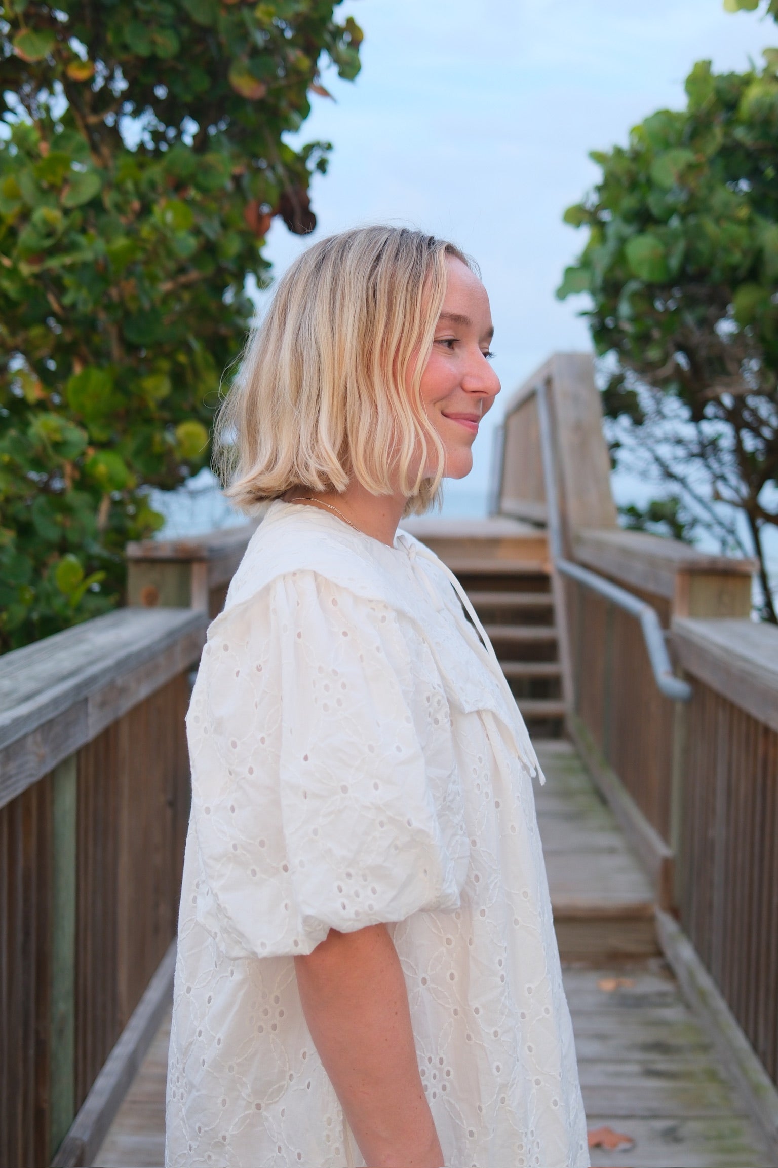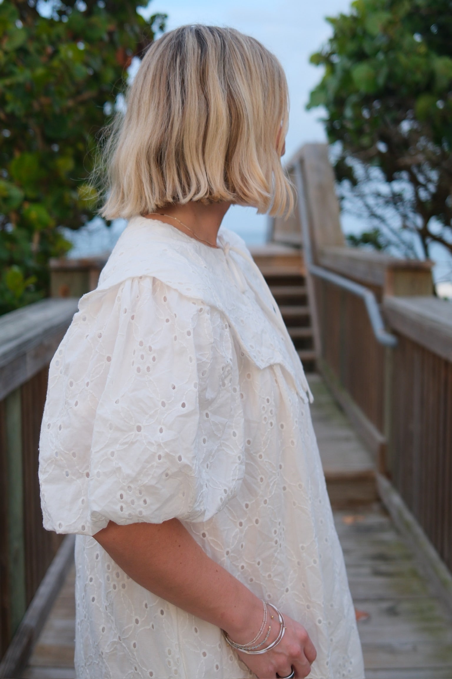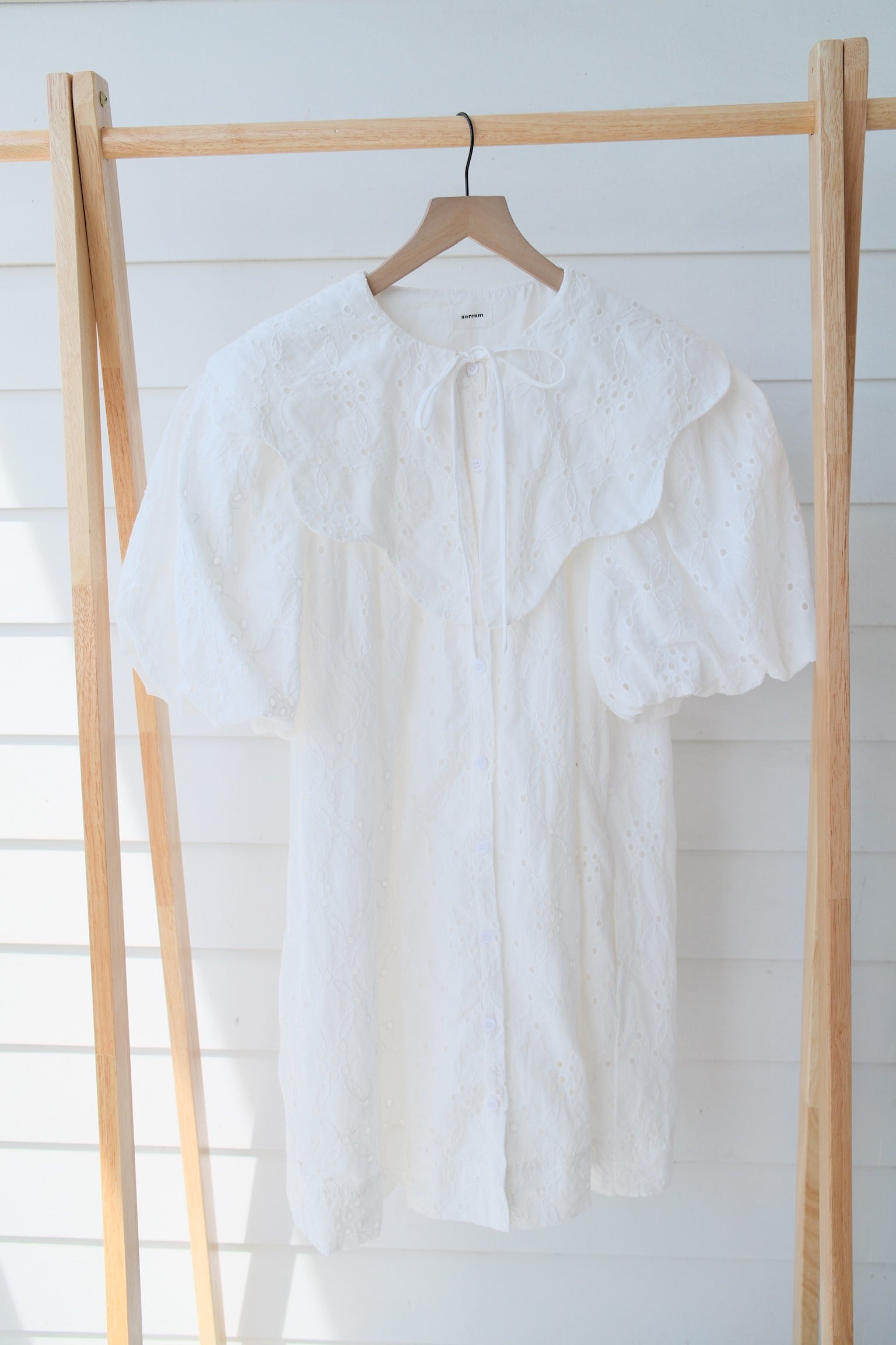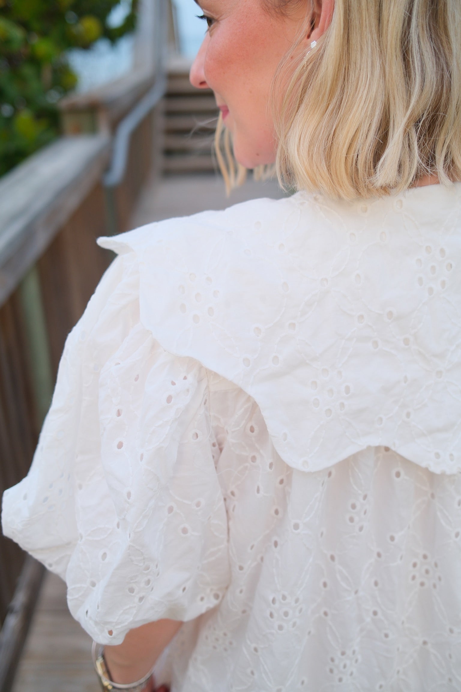 This white mini dress is a perfect addition to your wardrobe. The intricate eyelets and scalloped Peter Pan collar add a touch of elegance to the dress. Complete with a darling bow, this dress is both stylish and sophisticated. Stand out in the Magnolia Dress.