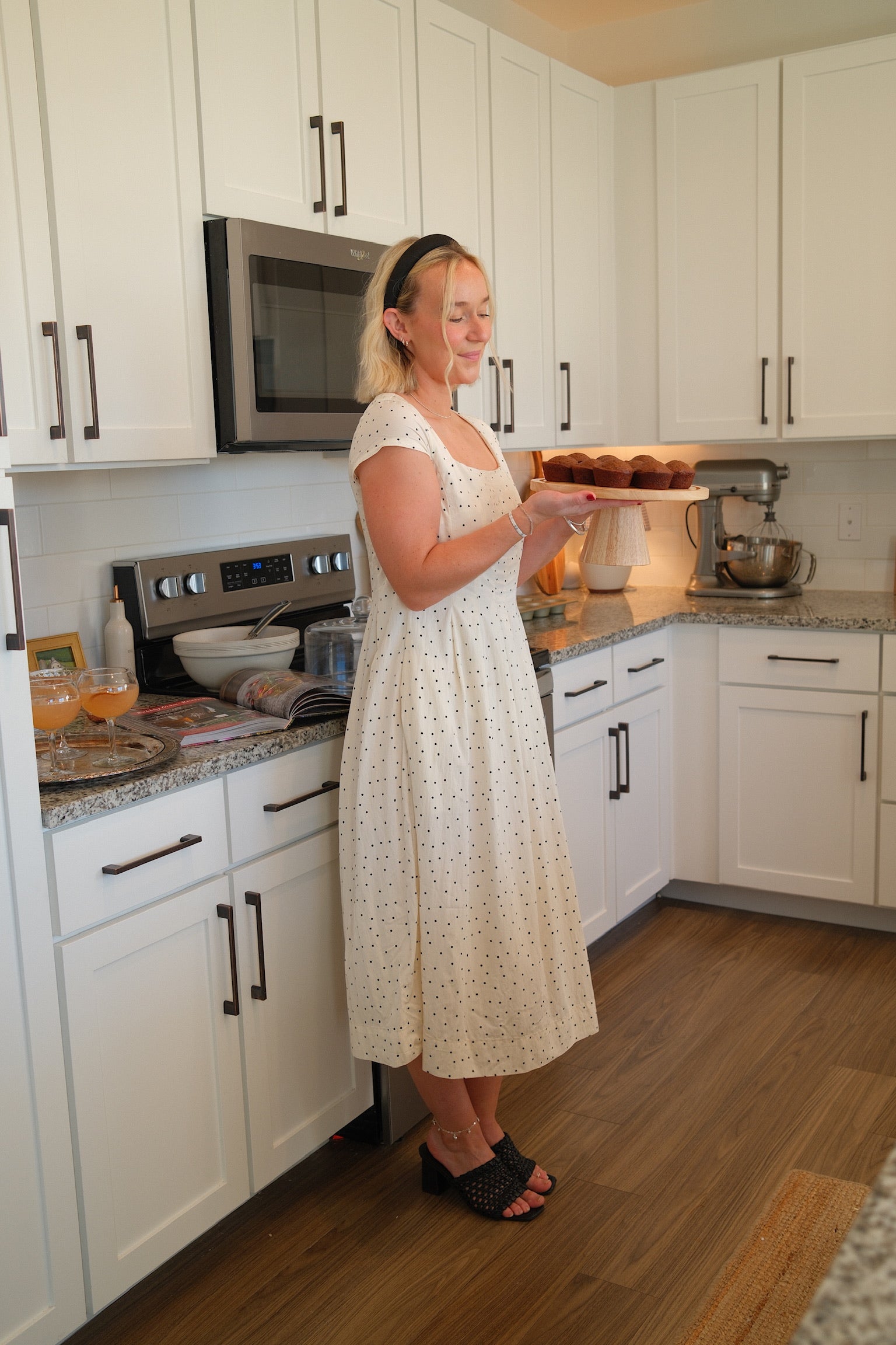 Introducing the Spot On Dress, the perfect choice for those who want to add a touch of dainty charm to their wardrobe. Featuring a square neck and classic black polka dot pattern on a cream background, this dress is both classy and playful. Make a statement with Spot On Dress!