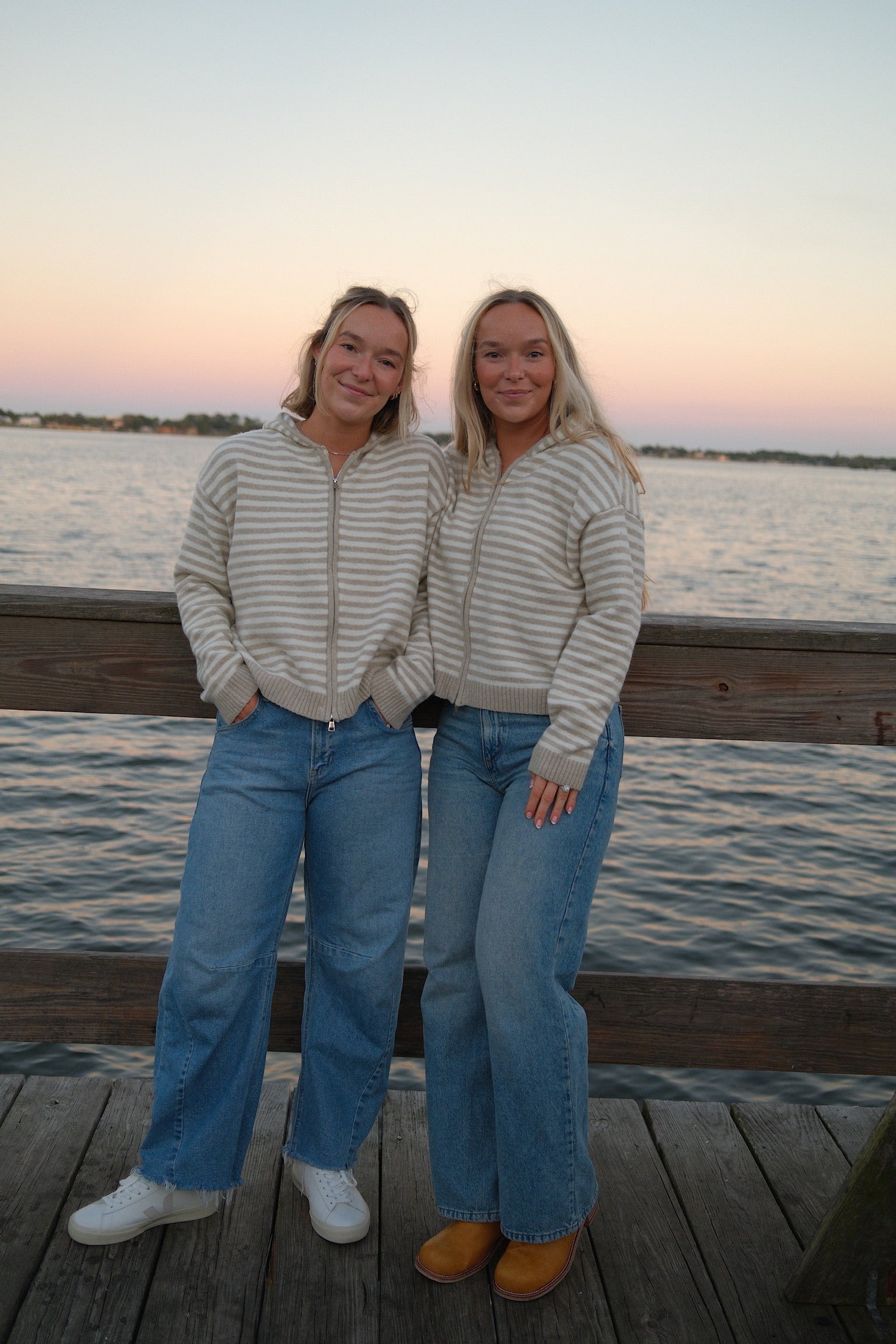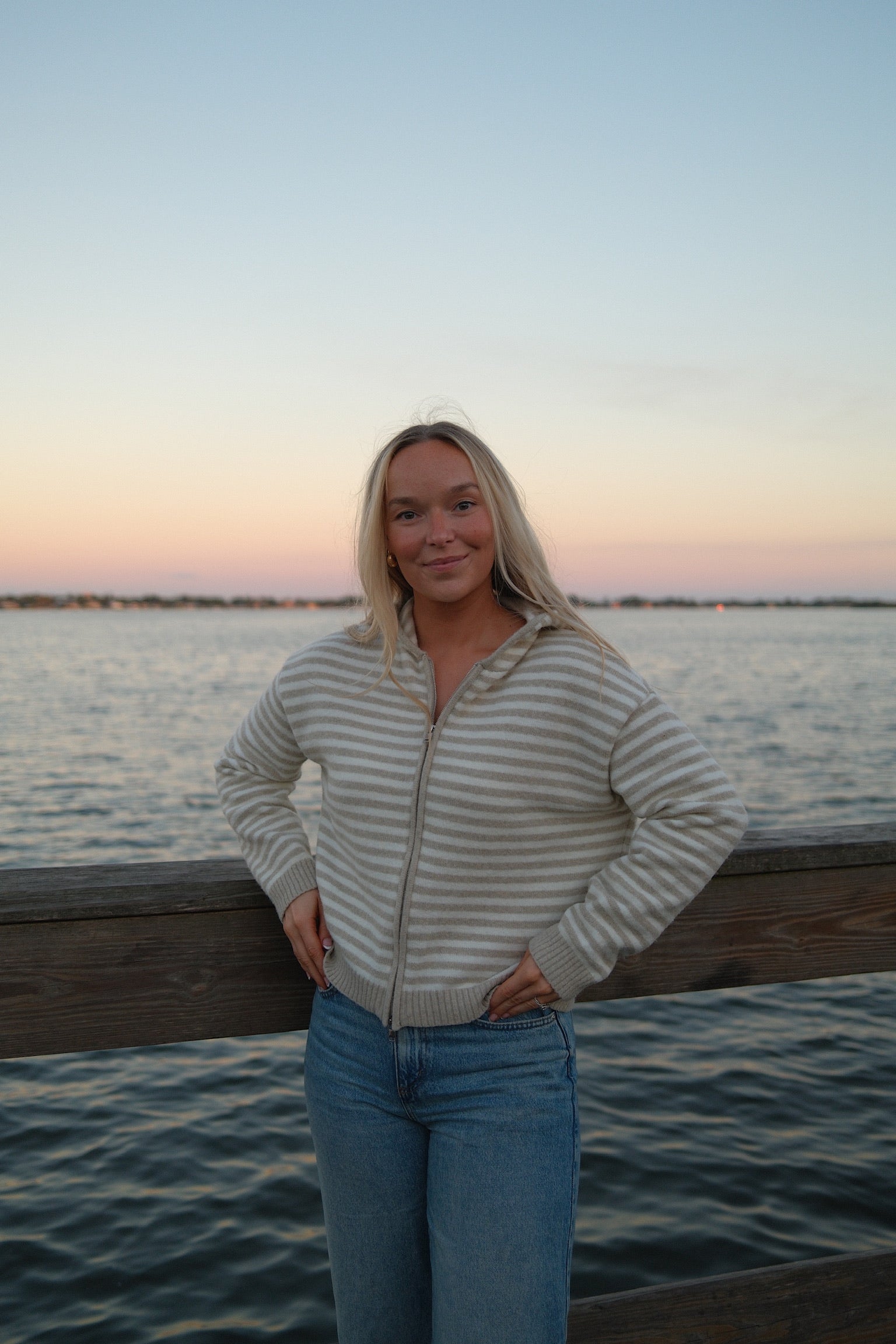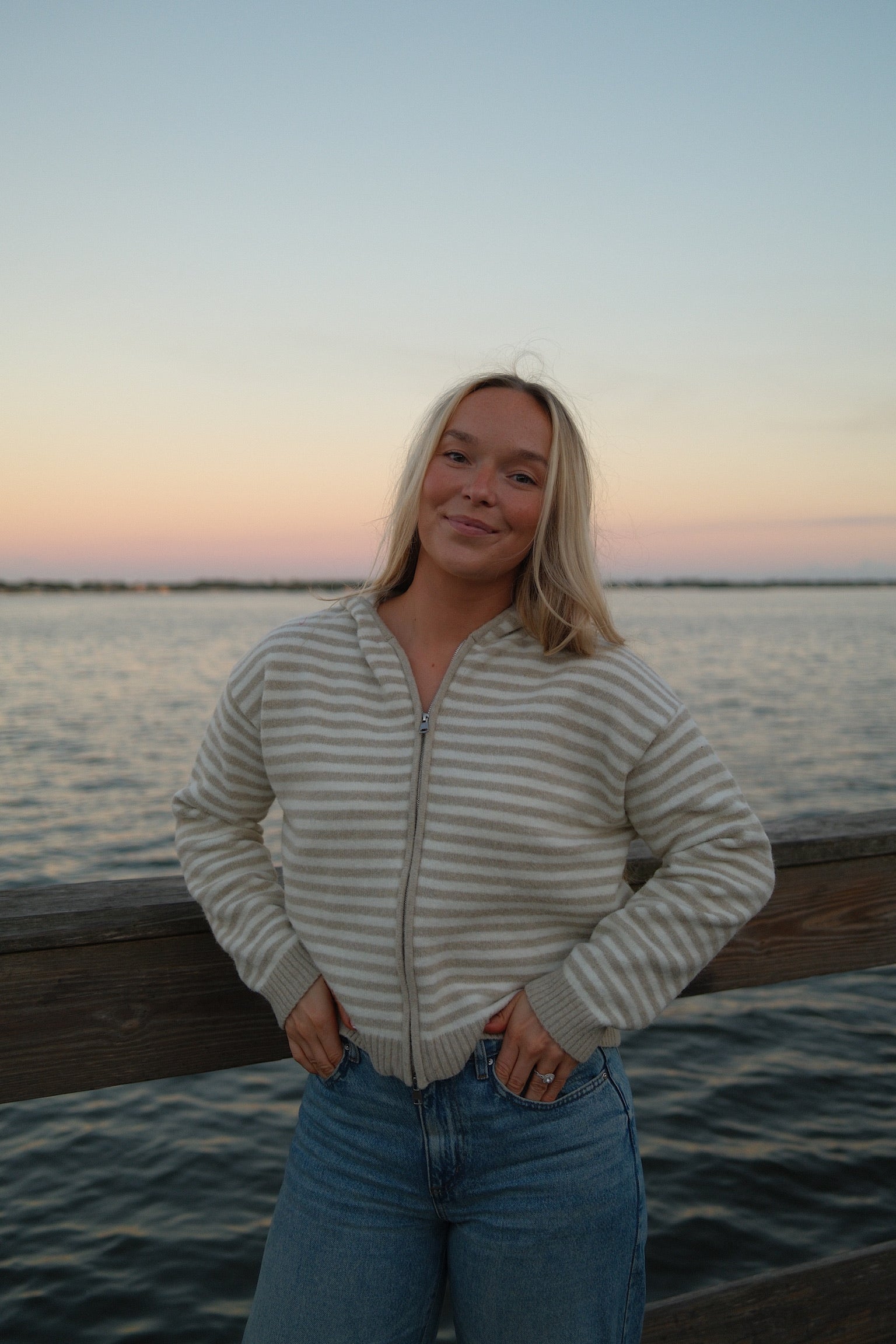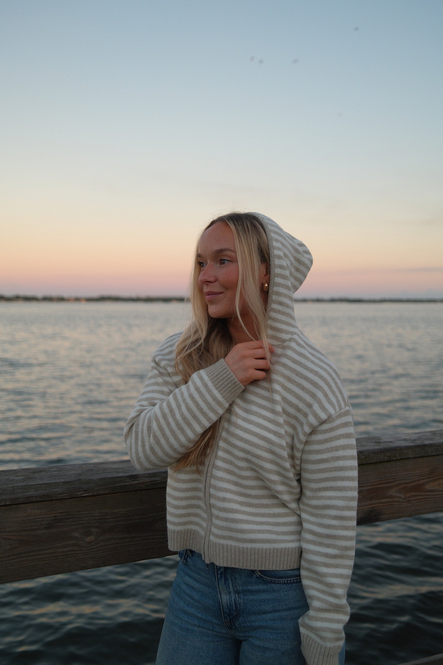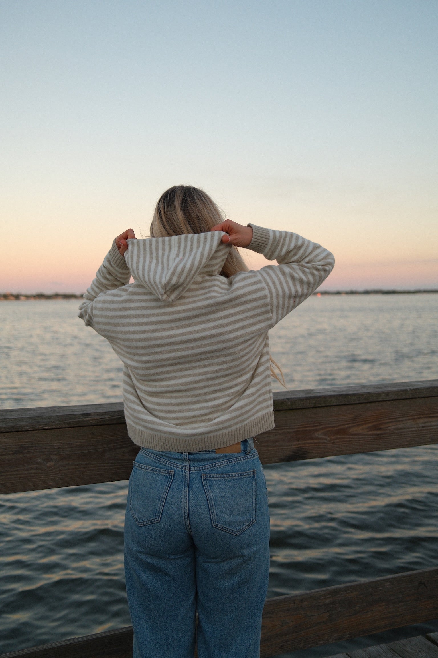 The Sandbar Zip Up is a medium weight, double zip, hooded knit. The fit is slightly boxy and perfect to wear with anything. Easy to layer and throw on with denim, lounge pants, and skirts. Classic coloring and a soft cozy fit makes it irresistible.