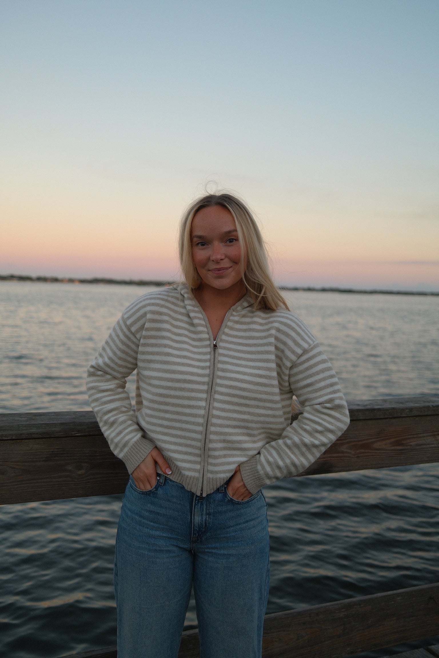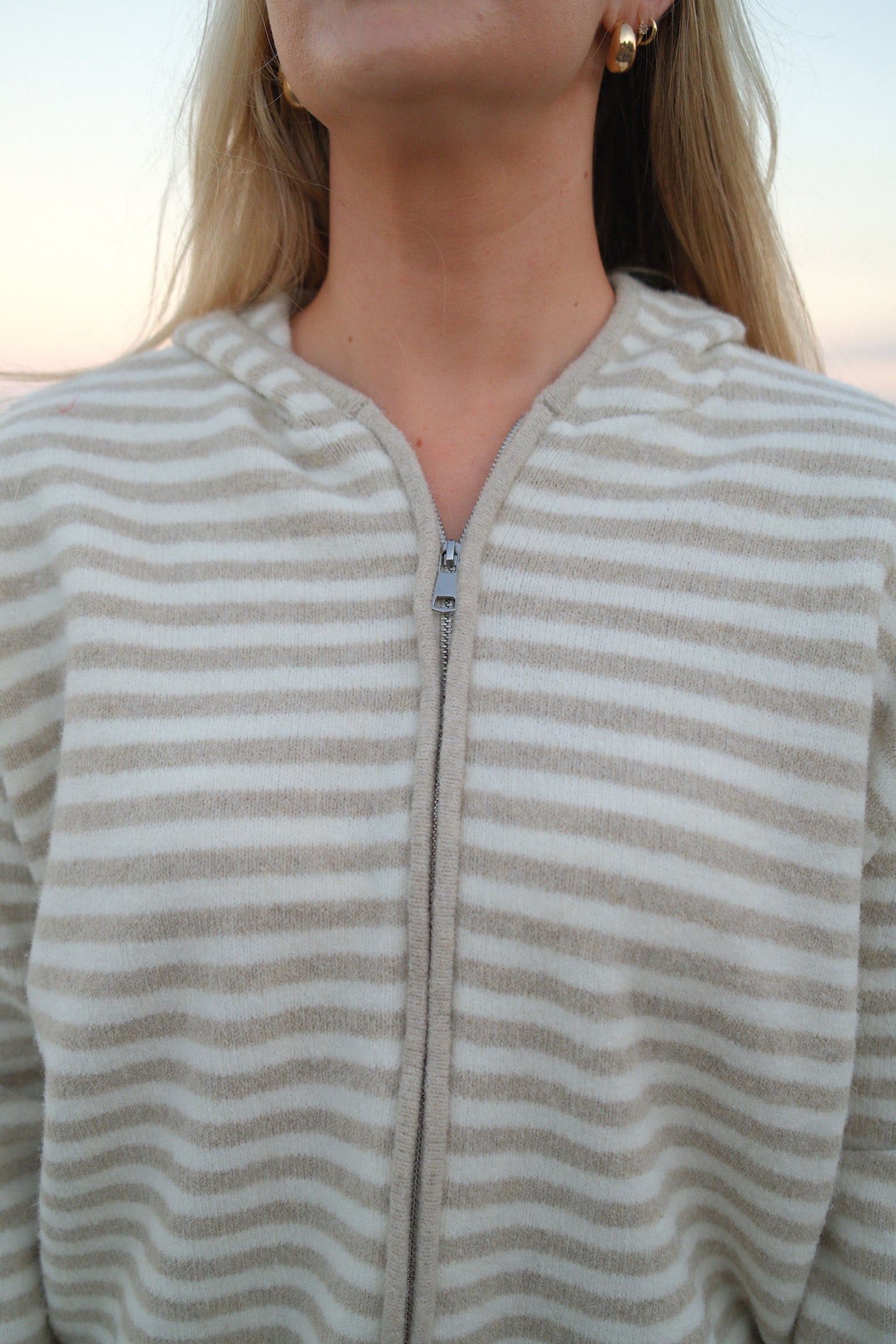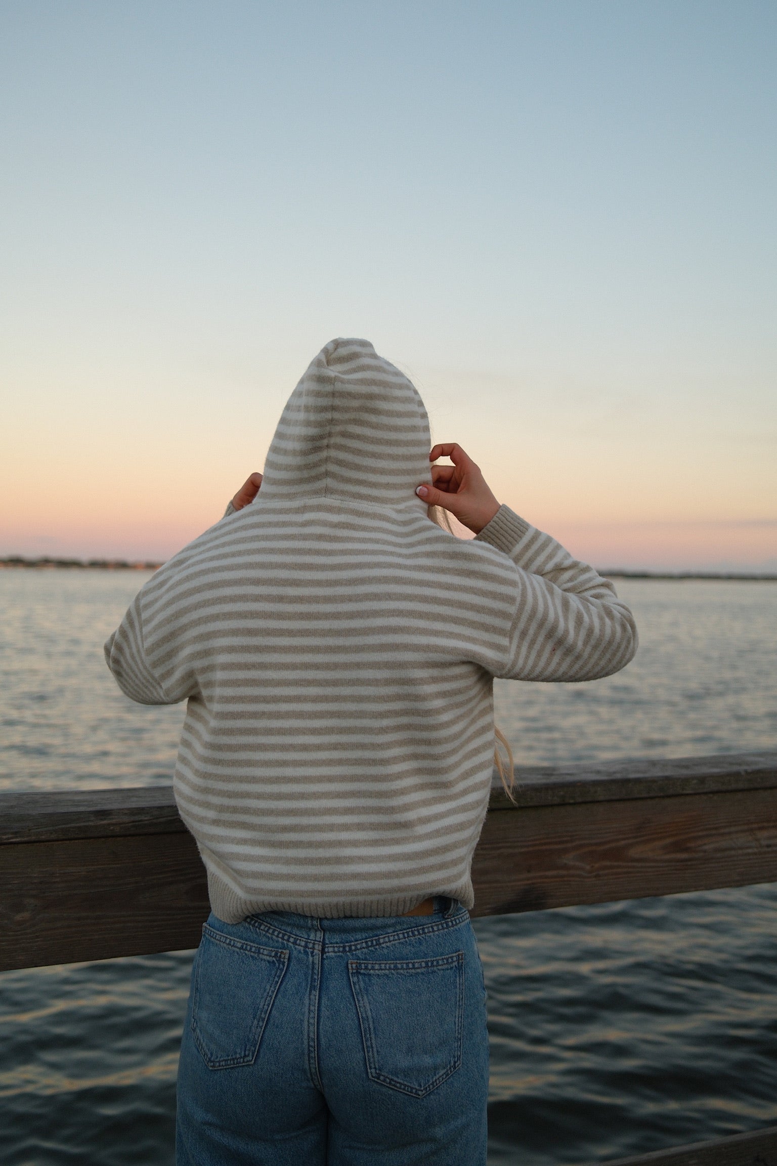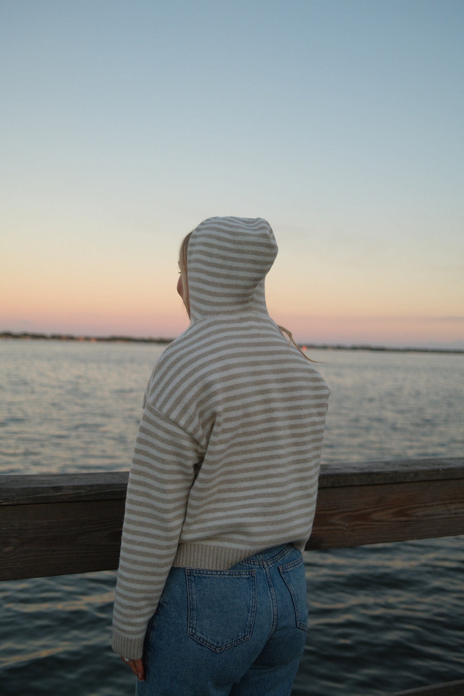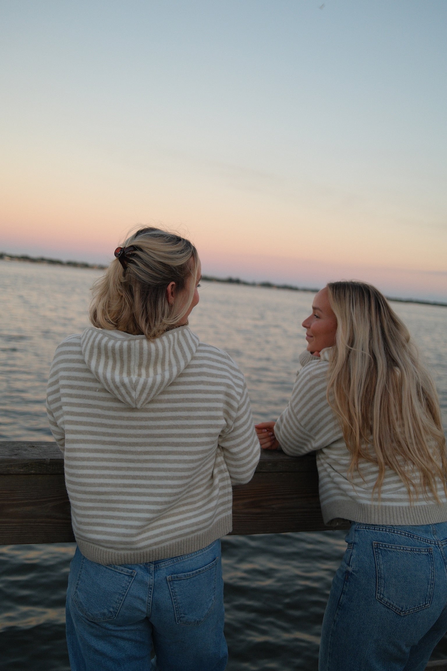 The Sandbar Zip Up is a medium weight, double zip, hooded knit. The fit is slightly boxy and perfect to wear with anything. Easy to layer and throw on with denim, lounge pants, and skirts. Classic coloring and a soft cozy fit makes it irresistible.