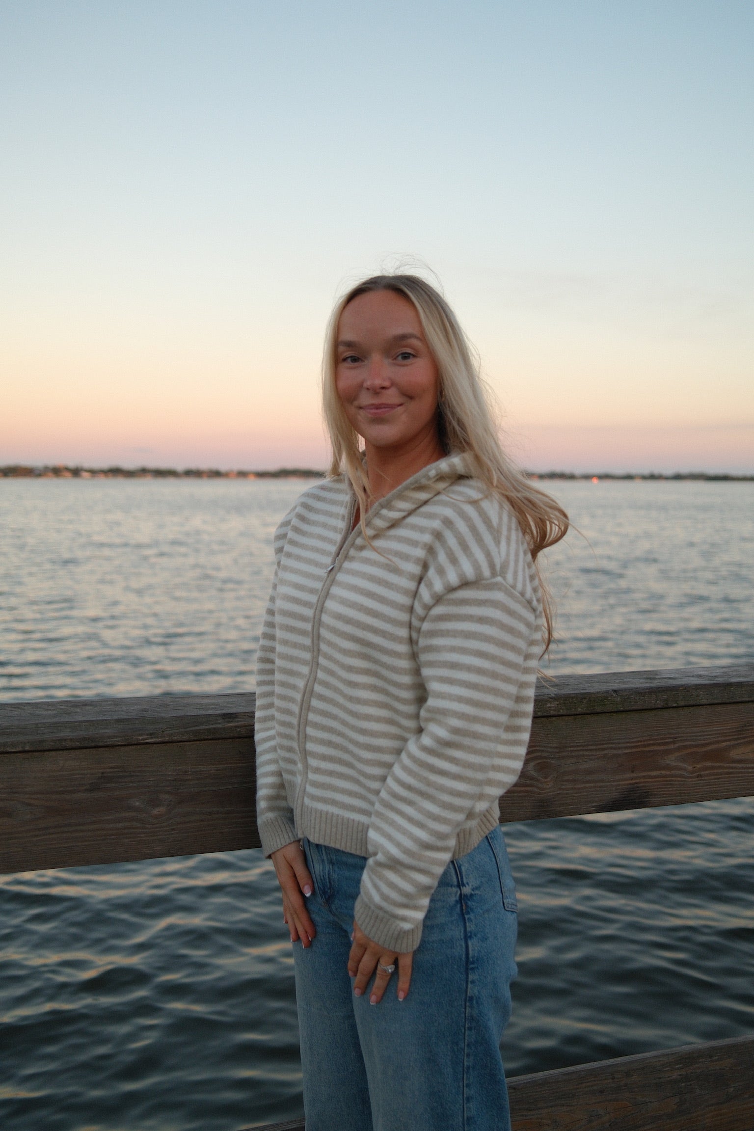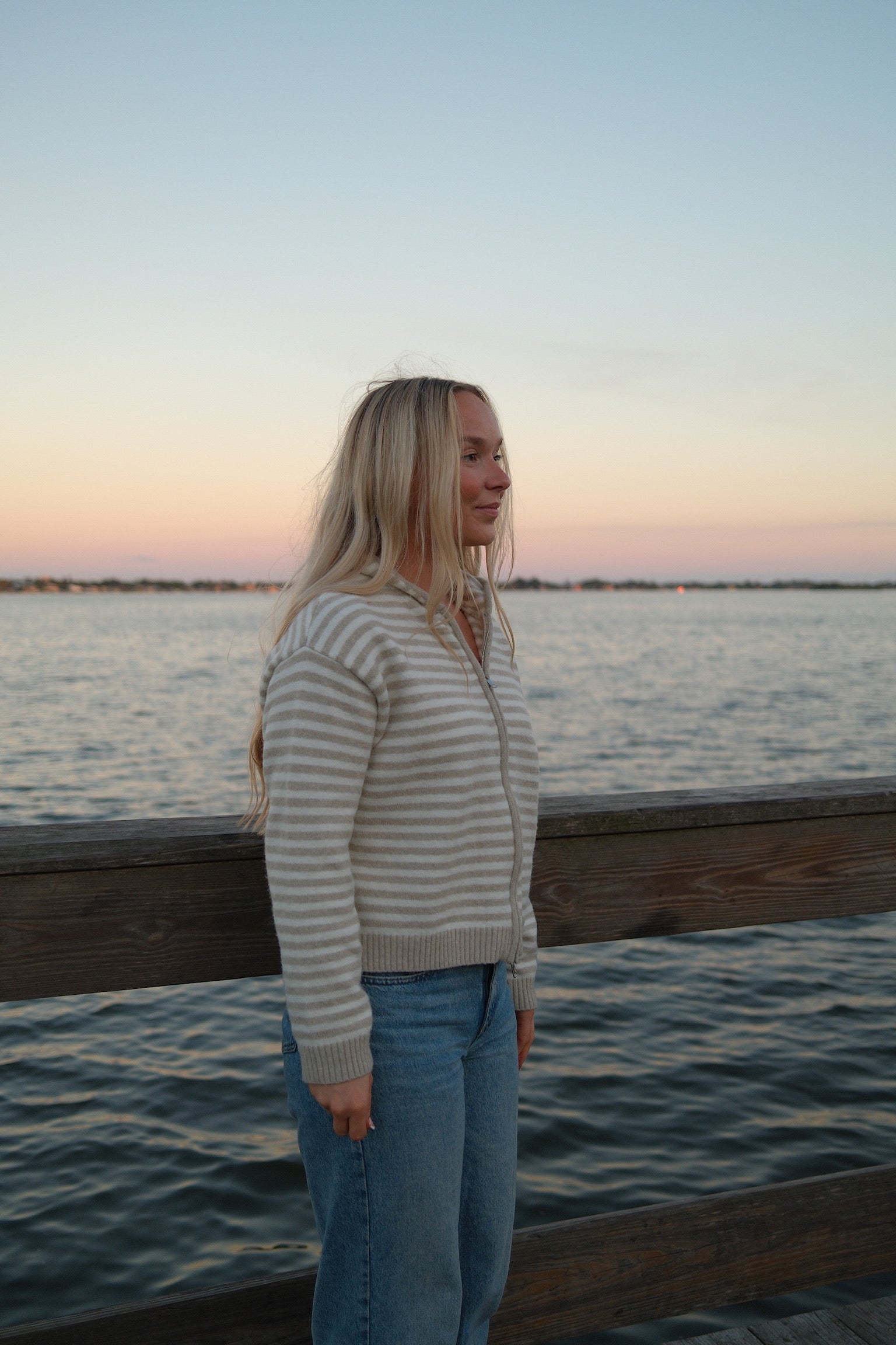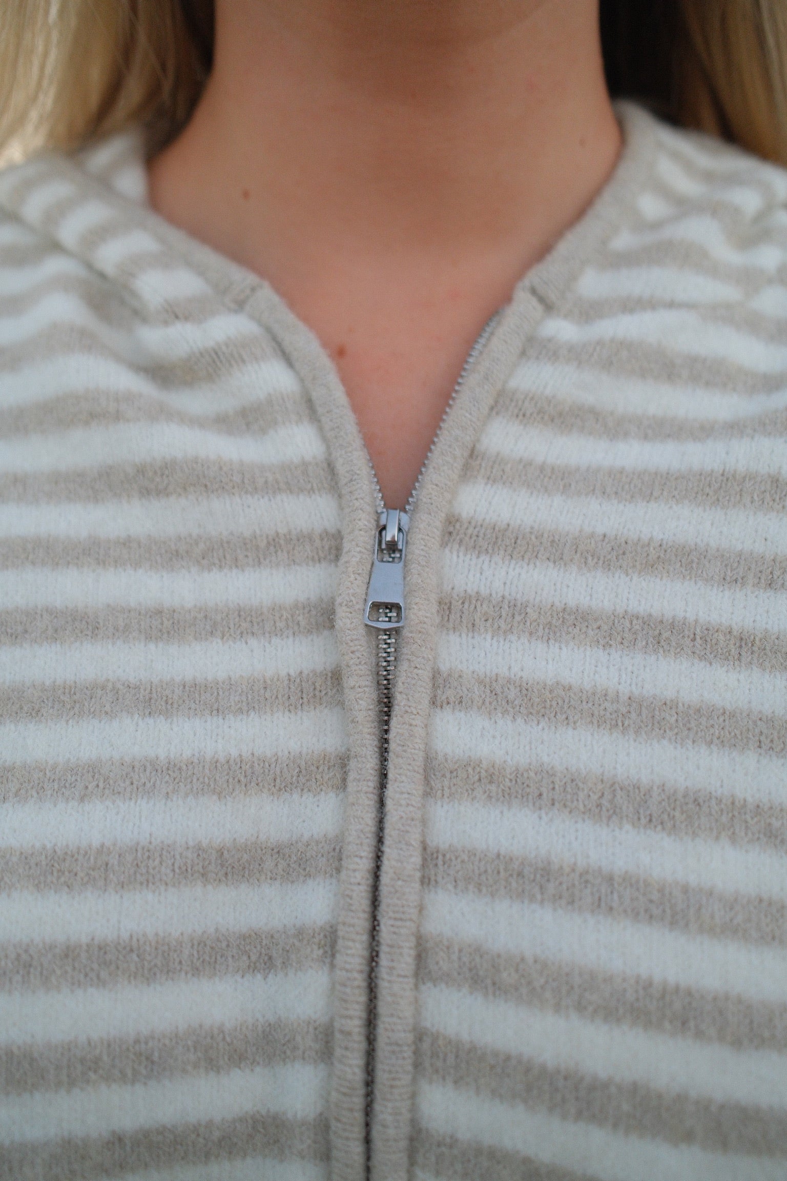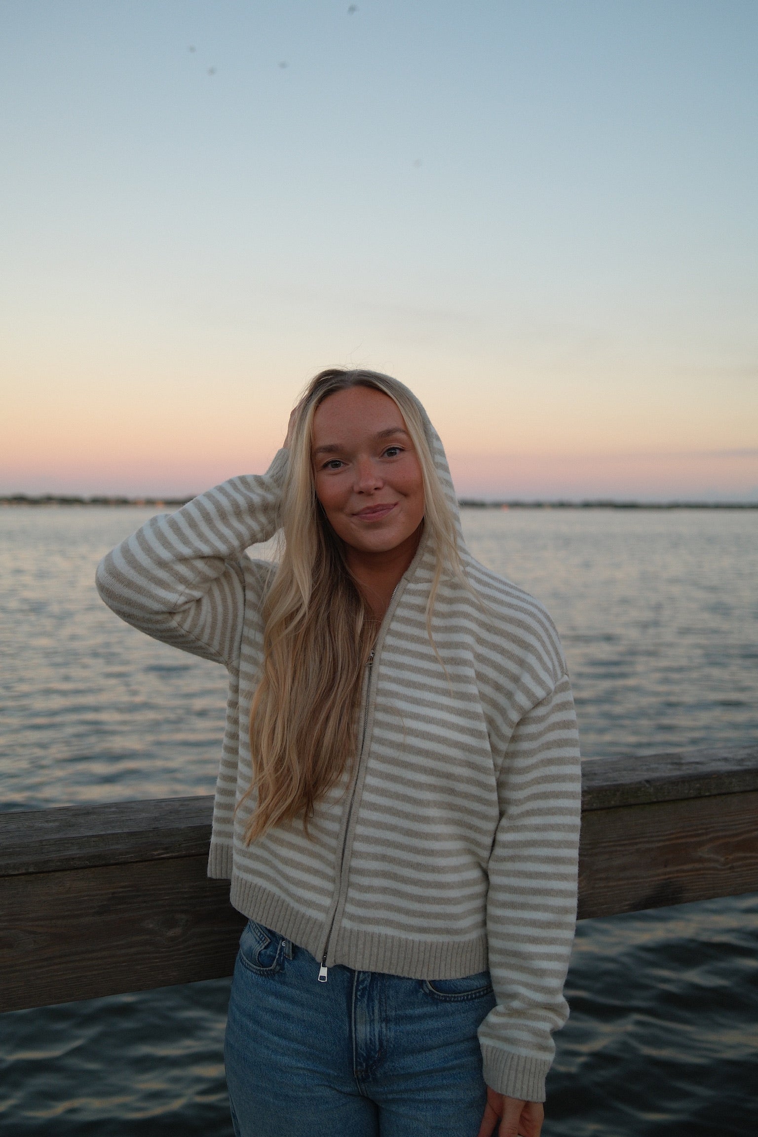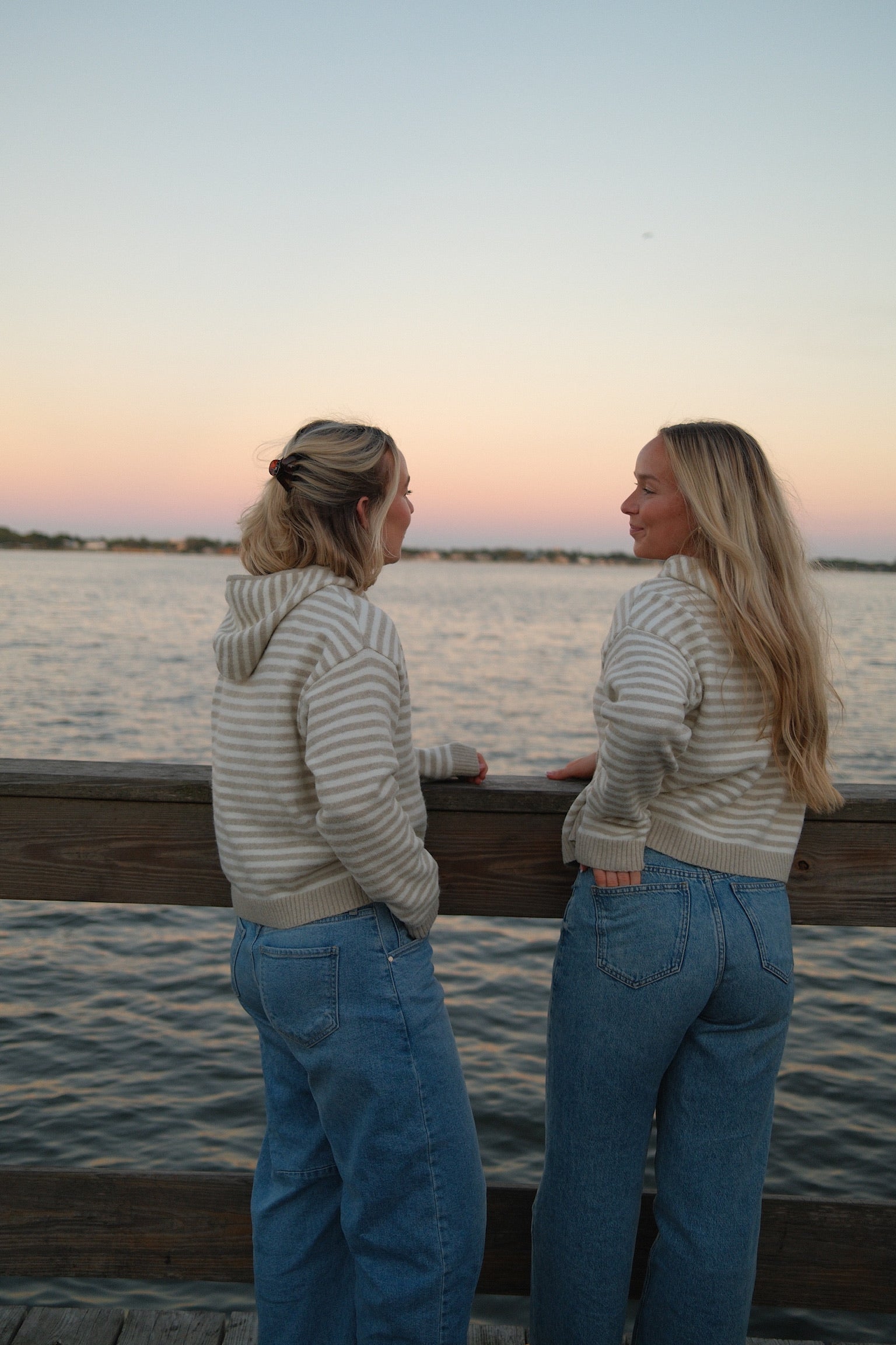 The Sandbar Zip Up is a medium weight, double zip, hooded knit. The fit is slightly boxy and perfect to wear with anything. Easy to layer and throw on with denim, lounge pants, and skirts. Classic coloring and a soft cozy fit makes it irresistible.